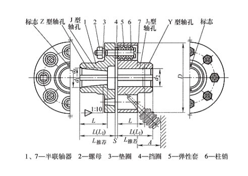 | 型號(hào) | 公稱(chēng)扭矩 Tn (N.M) | 許用轉(zhuǎn)速n (r/min) | 軸孔直徑d1 d2 dz | 軸孔長(zhǎng)度 | D | A | S | 質(zhì)量 m Kg | 轉(zhuǎn)動(dòng)慣量I (Kg.m2 ) | ||||